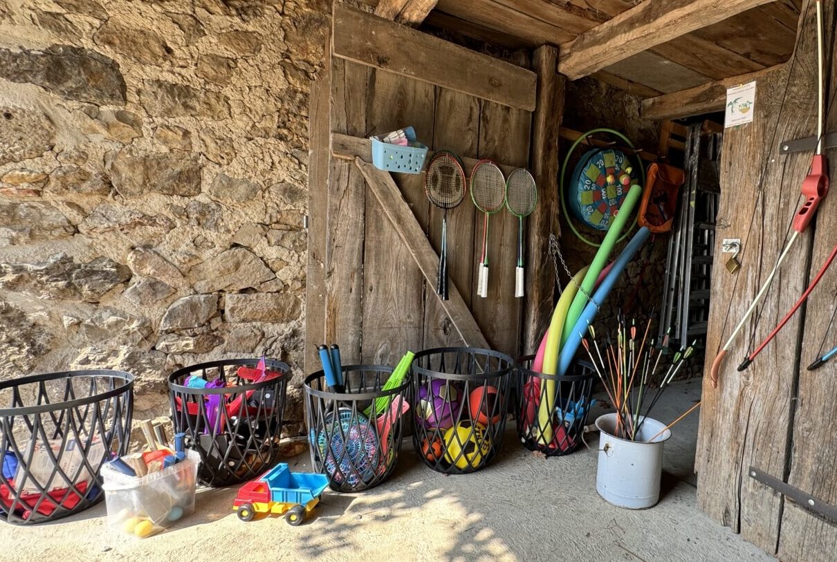 The main garden is laid mainly to lawn, split into two areas we call the ‘top’ and ‘bottom’ gardens (sounds very grand, but really they’re just two connected grassy areas for you all to enjoy). There are a selection of toys provided for our younger guests; also table-tennis, soft-archery, badminton and boules to be enjoyed by those of all ages! The garden has two picnic tables with umbrellas, sun-loungers, chairs, a ‘retro’ swing chair and several benches so that you can catch the sun, or shade as you choose.