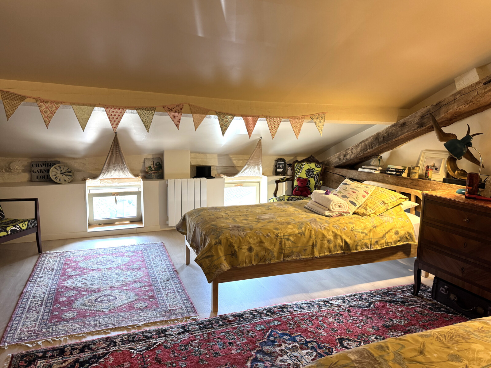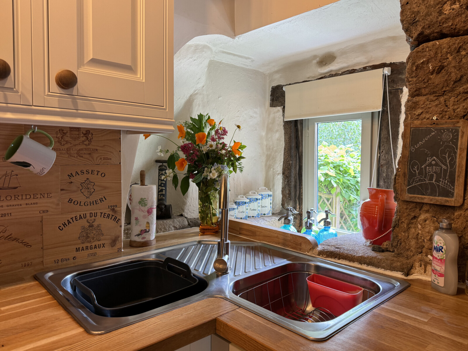 La Vienne gite is a 3 storey holiday home, it offers a warm contemporary welcome with all the comforts you could wish for. Tastefully decorated with a selection of antiques and the unusual; all of the rooms are well proportioned and airy. The ground floor offers open plan living, you enter the gite straight from the front patio area which catches the afternoon and early evening sun. You then progress into the dining and kitchen area, where there is a door to a second patio area at the rear of the gite, where you can enjoy the morning sun with your coffee and croissants. At the side, there is a small private garden with table, chairs, umbrella and your personal gas BBQ / Plancha.